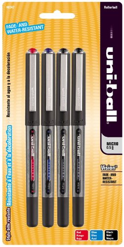 Too awesome for words., April 30, 2012 Amazon Verified Purchase This review is from: uni-ball Vision Stick Micro Point Roller Ball Pens, 4 Colored Ink Pens (Office Product) My favorite pens of all time. I'm an artist, and these guys do it for me. Ink work.. doesn't smear, doesn't fade. Watercolors go right over them nicely.