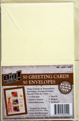 A Great Product!, December 9, 2010 By Michaeleen Muhovich (Yankton, SD United States) - See all my reviews Amazon Verified Purchase This review is from: 50 Blank Greeting Cards & Envelopes 5x7 A7 Ivory (Health and Beauty) It took a number of returns to Amazon website before this product was available for sale. I had previously purchased the white version of the blank cards, which were consistently available.