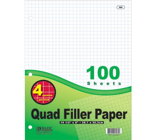 | By Manora (New York City) - See all my reviews Amazon Verified Purchase This review is from: Bazic Quad-Ruled Filler Paper, 4 x 1 Inches, 100 Sheets (Case of 36) (Office Product) The price was right however seeing graph paper was a surprise for me. The packaging was great for the item |