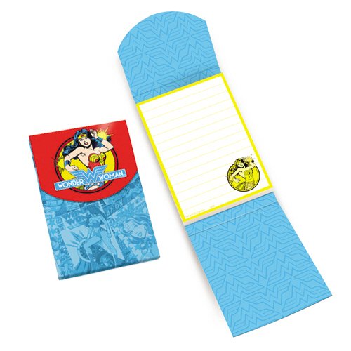 This is a short and simple product, so I'll make the review the same. I love Wonder Woman. I use pads for notes ALL the time. Desk is littered with the little buggers. LOL So I was browsing through stationary and stumbled onto this gem. The note pad comes in a Wonder Woman magnetic flip pad that secures it shut. The pad, when used up, can be refilled from other 3" X 4.25" pads, which makes this all the better for me. When I went grocery shopping this morning, I had my list on this item in my pocket with a pen. Made my shopping list a cinch that could be double checked and slipped right back into my shirt pocket. I love mine, and if you're a fan of Wonder Woman, you will love yours too. Thanks for your time folks. Sincerely, R.A. McDowell